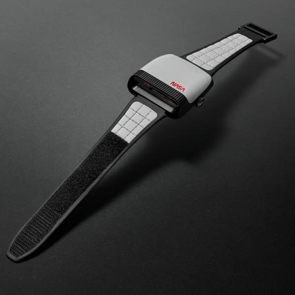 Часы получили белый керамический корпус с красным логотипом NASA, упаковка выполнена в форме прозрачной сферы, отсылающей к космической тематике. Ремешок сочетает белую кожу и застежку-«липучку», аналогичную тем, что использовались астронавтами (с возможностью плавной регулировки длины).