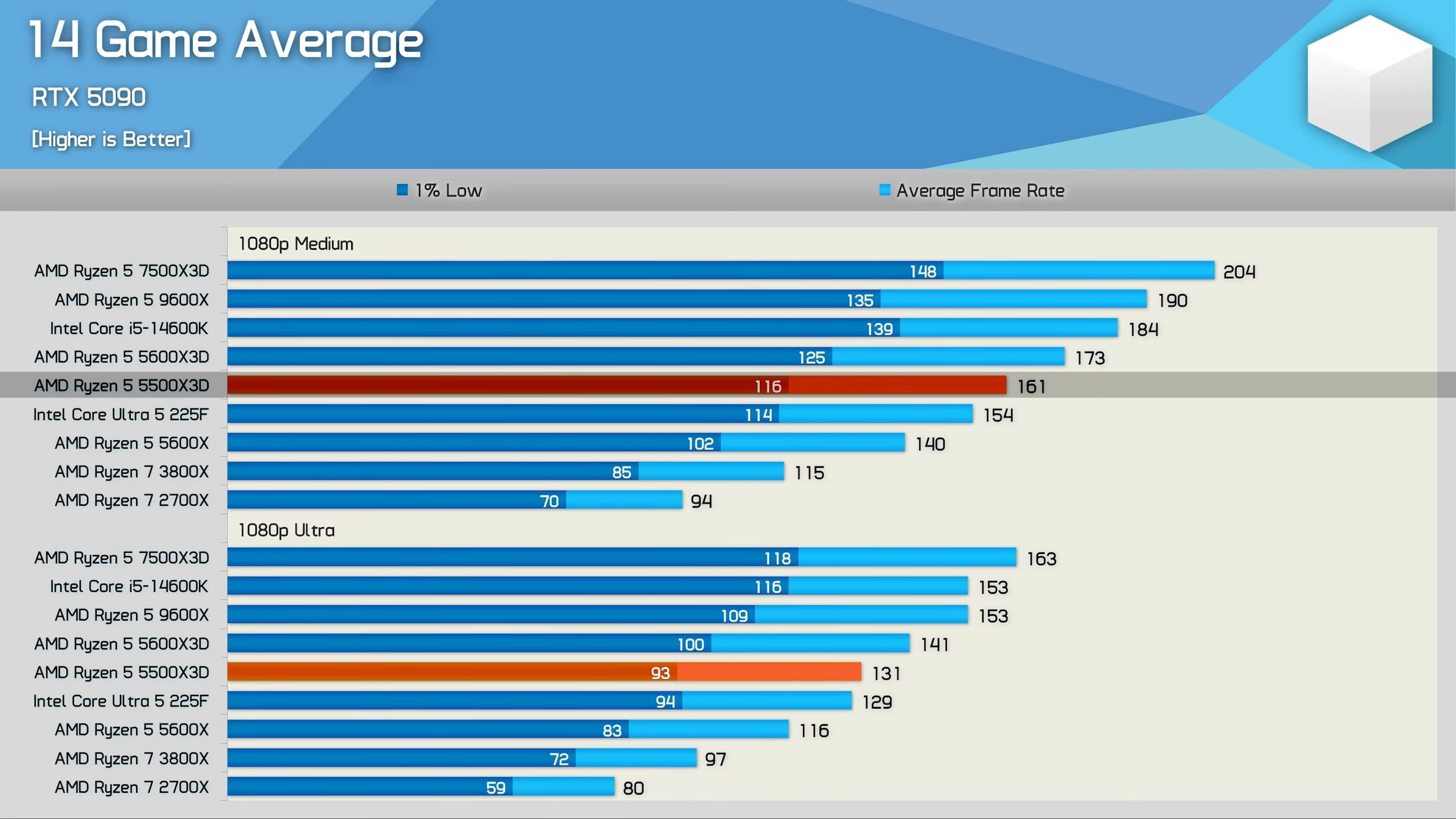 Процессор протестировали в 14 играх. Конечно, с RTX 5090 и в Full HD, чтобы максимизировать влияние процессора. В таких тестах всегда нужно учитывать этот аспект, ведь реальные сценарии использования зачастую другие.