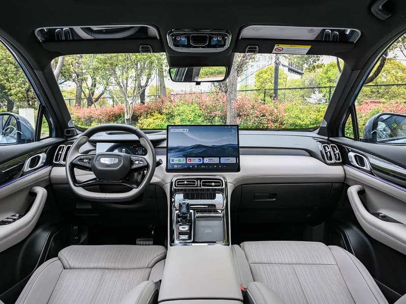 Особое внимание Geely уделила комфорту. Передние сиденья оснащены поддержкой поясницы и ног, подогревом, вентиляцией, массажем и динамиками в подголовниках. Также заявлена аудиосистема Flyme Sound на 16 динамиков с эффектом 7.1.2-канального объемного звучания.