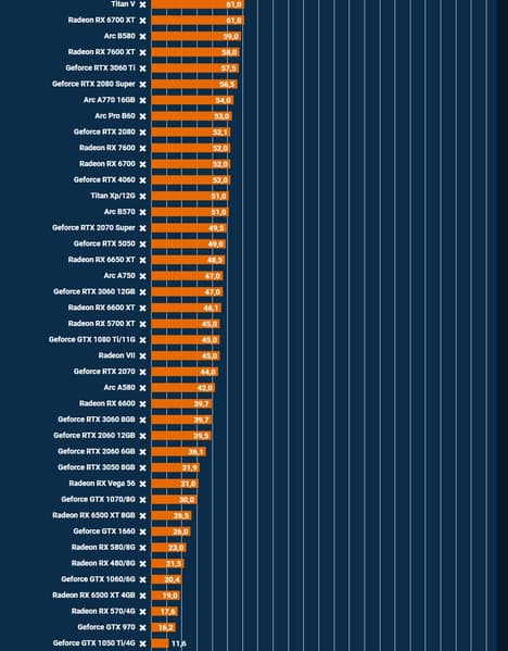 Авторы PCGamesHardware решили освежить свой большой общий рейтинг видеокарт. Он составлен по результатам тестов в 20 играх в четырёх разрешениях и включает 81 видеокарту, включая модели, вышедшие 12 лет назад.