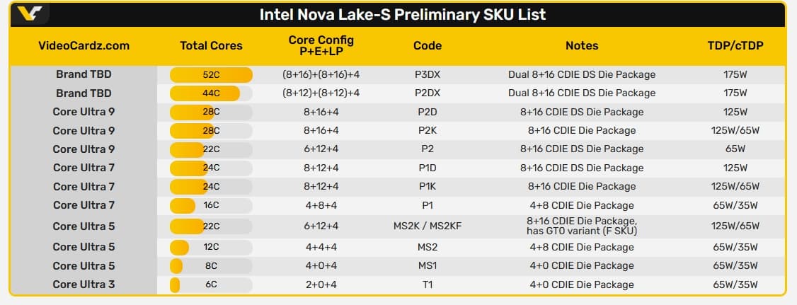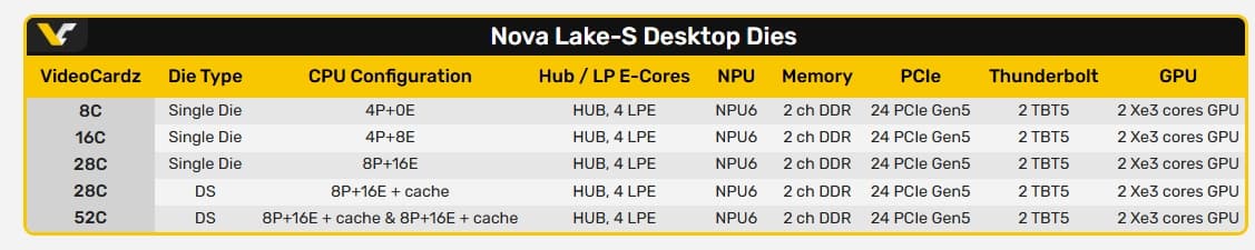 Nova Lake будут очень сильно отличаться от всего, что ранее делала Intel, и в первую очередь это выражается в конфигурации и конструкции самих процессоров.