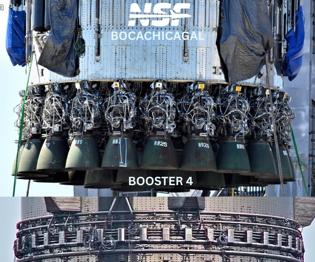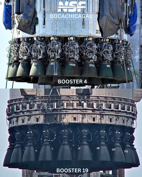 Илон Маск процитировал пост Найла Андерсона, в котором сравнивается ускоритель Super Heavy Booster 4 с ранними двигателями Raptor с Booster 19, который оснащен новейшими Raptor 3.