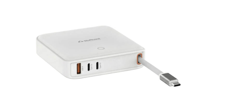 Также есть встроенный выдвижной кабель USB-C длиной до 93 см с мощностью до 65 Вт и дополнительный порт USB-A с поддержкой Quick Charge 3.0 (до 18 Вт). В сумме доступно 4 выхода, а распределение мощности автоматически меняется в зависимости от числа подключённых устройств.