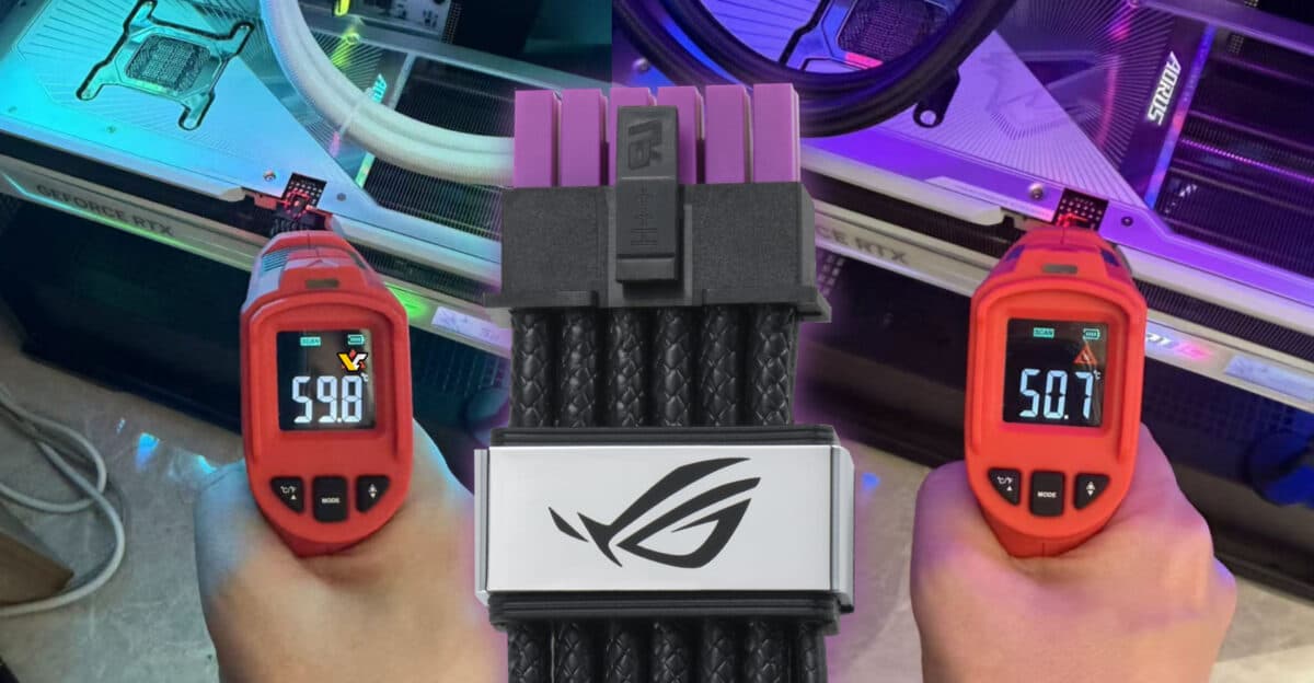 В Сети появился первый пользовательский тест нового кабеля Asus ROG Equalizer, который должен снизить риски возникновения проблем с разъёмом питания 12v-6x2. Напомним, кабель не имеет каких встроенных датчиков, но благодаря своей конструкции способен выдерживать ток до 17 А вместо примерно 9 А у обычных кабелей.
