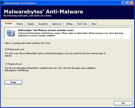 Malwarebytes' Anti-Malware - новая программа от создателей RogueRemover Pro и About:Buster и других популярных утилит, предназначенная для быстрого сканирования системы в поисках различных видов вредоносного ПО. Anti-Malware пока еще находится в стадии разработки, так что возможны проблемы со стабильностью.