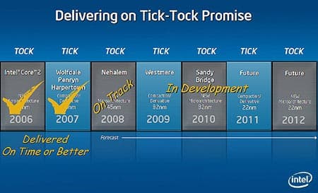 Стратегия, получившая название Tick Tock, оказалась для Intel весьма успешной. Ее суть заключается в том, что каждый четный год компания представляет новую архитектуру, а каждый нечетный — уменьшает ее до следующих норм техпроцесса.
