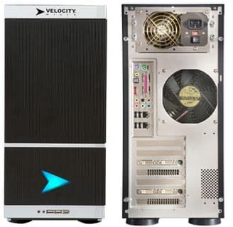 Например, модель Velocity Raptor Z90 может быть оснащена процессором Core i7-950, работающим на частоте 3,06 ГГц. В этом случае ее базовая конфигурация, включающая системную плату EVGA на чипсете Intel X58, 6 ГБ (3х 2 ГБ) памяти DDR3-1666, видеокарту Radeon HD 4890 с 1 ГБ памяти GDDR5, винчестер объемом 1 ТБ, два оптических дисковода и звуковую карту Creative Labs SoundBlaster X-Fi XtremeGamer, обойдется покупателю в $2819. Этот компьютер также оснащен 10 портами USB, два из которых вынесены на переднюю панель, двумя портами IEEE 1394 FireWire и сетевым адаптером Gigabit Ethernet, комплектуется игровой клавиатурой и мышью. Замена процессора на Core i7 975 Extreme Edition увеличивает цену на $640.
