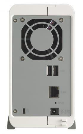 Среди особенностей устройства можно выделить сервис iSCSI Target, разъём Gigabit LAN, а также поддержку режима RAID1, который позволяет дублировать данные для большей надёжности. С помощью трёх разъёмов USB (один на передней панели и два на задней) можно расширить объём хранилища, организовать общий доступ к принтеру или выполнить резервное копирование данных на внешний носитель.