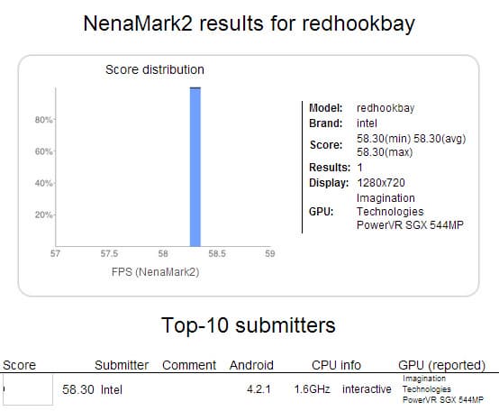 Увы, источник не приводит новых данных о процессоре, поэтому остается оперировать теми сведениями, что известны на текущий момент. За несколько дней до публикации информации о Lenovo K5 в базах данных бенчмарков NenaMark 2 и AnTuTu появились странички с тестами устройства RedhookBay, укомплектованного как раз процессором Merrifield. Это был двухъядерный CPU с тактовой частотой, лежащей в пределах от 1,6 до 2,0 ГГц. Приложения высоко оценили RedhookBay: NenaMark «наградила» устройство 58,3 fps, а Antutu выставил изделию 31 612 баллов. Правда, в конфигурацию RedhookBay вошел дисплей разрешением 1280 х 720 точек, а в Lenovo K5 используется экран с Full HD разрешением, что явно скажется на производительности готового устройства.