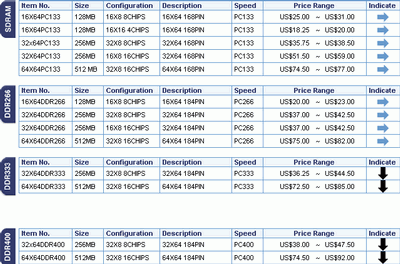 Судя по низкой активности на рынках памяти в Азии, далеко не все биржи (или трейдеры) начали работать в полную силу. Обозреватели даже указывают, что последний раз такая низкая активность была зафиксирована в апреле, во время эпидемии SARS. После недавнего анонса контрактных цен и последовавшего за этим снижения цен на DDR SDRAM участники рынка все больше внимания уделяют SDRAM.