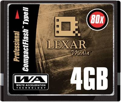 Кажется, становится традиционным анонсировать флэш-карты со скоростной характеристикой 80x (12 Мб/с). Lexar не исключение – такая карта анонсирована на проходящей PMA. Серия Professional CF 80x представлена моделями емкостью 256, 512 Мб, 1, 2 и 4 Гб. В продаже карточки появятся в мае этого года, их предполагаемая розничная цена – около 100, 200, 400, 700 и 1500 долларов соответственно.