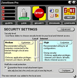 Вышла новая бета-версия ZoneAlarm, мощного, но в то же время удобного и простого в освоении брэндмауэра, способного решать проблемы безопасности вашего ПК при работе в локальной сети или Web, включая беспроводные сети. Программа имеют гибкие настройки правил. Кроме имеющихся 6 дефолтных (по 3 на каждую из зон Local/Internet) пользователь может настраивать уровни безопасности самостоятельно. Удобно реализован фильтр приложений (аксесс-лист), позволяющий устанавливать права для каждой программы, рвущейся на свободу.