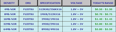 После периода массового размещения крупных заказов у производителей NOR-флэш, четвертый квартал стал периодом массовых поставок микросхем памяти этого типа, что привело к созданию избыточного предложения, в результате этого цены и снизились. Несмотря на то, что достаточно регулярно возникают запросы микросхем NOR-флэш низкой плотности (16, 64 и 128 Мбит), дистрибьюторские каналы насыщенны данными наименованиями, и, вероятно, избыток просуществует до весны будущего года.