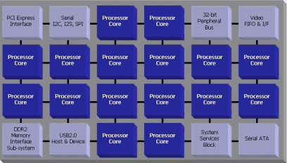 Видимо, этим соображением руководствовались разработчики компании Boston Circuits (BCI) , проектируя мультипроцессорную однокристальную архитектуру, получившую название Grid on Chip. Новая разработка, по замыслу ее создателей, должна найти свое место в процессорах для будущих мультимедийных устройств.