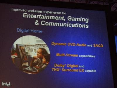 А также было впервые упомянуто планируемое в 2004 году аудио решение от Intel (Azalia) нацеленое как на игровые применения так и на бизнес. В активе: