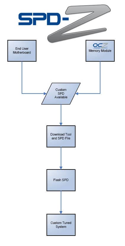 SPD-Z Technology, на которую OCZ уже подала заявку с целью получения патента, используемая в фирменной утилите компании, является первой в своем роде и позволит конечному пользователю самому перепрограммировать блок памяти SPD (serial presence detect), в котором содержится информация о возможностях модулей памяти (скорость, задержки (тайминги)). Это, как сообщается, позволит добиться от памяти максимальной производительности и повысить стабильность работы памяти.