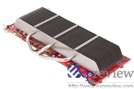 Данная модель с легкостью удовлетворяет обоим вышеприведенным пожеланиям (условиям). Ускоритель использует современный 55-нм графический чип и мощную (надо полагать) систему охлаждения пассивного типа, которая справляется с отводом тепла от чипа и памяти без принудительного обдува.