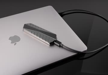 К компьютеру оно подключается по интерфейсу Thunderbolt и может работать с двумя носителями сразу