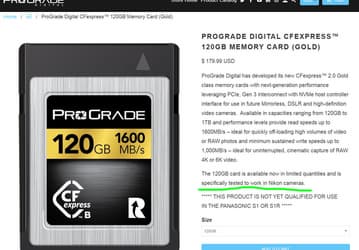 Карта памяти ProGrade Digital CFexpress объемом 120 ГБ проверена на совместимость с камерами Nikon