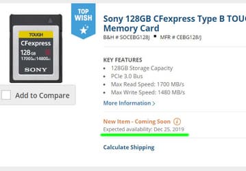 Стало известно, когда начнутся поставки карт памяти Sony CFexpress Type B