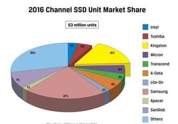 Лидирующие поставщики твердотельных накопителей: Samsung, Kingston и SanDisk