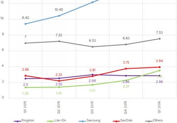По итогам первого квартала 2016 года Samsung уверенно лидирует на рынке SSD с долей более 40%