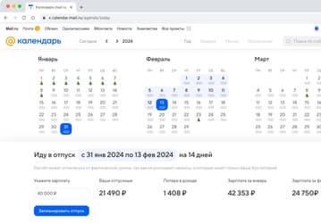 «Календарь Mail.ru» поможет рассчитать отпускные