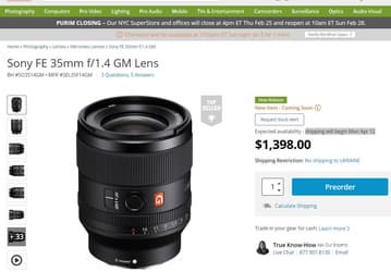 Поставки объектива Sony FE 35mm F1.4 GM отложены по «производственным причинам»