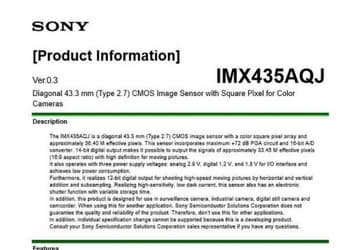Полнокадровый датчик изображения Sonу IMX435AQJ разрешением 36 Мп поддерживает съемку видео 8К