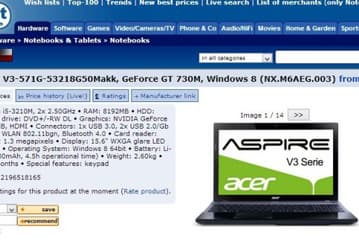 Аппарат, вероятно, технически и внешне повторит лэптоп Acer Aspire V5-171