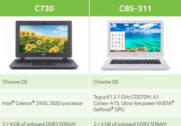 В Acer C730 используются процессоры Intel, а в CB5-311 - SoC Nvidia Tegra K1