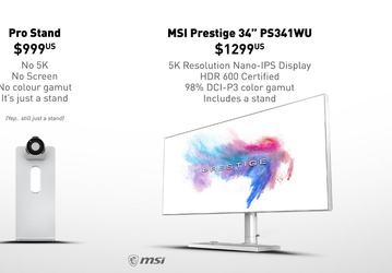 MSI троллит Apple: зачем покупать подставку для монитора за $1000, если за $1300 можно купить монитор 5К с подставкой?