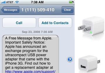 Apple сообщила об отзыве сетевых адаптеров с помощью SMS