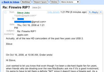 Джобс прокомментировал отсутствие FireWire в MacBook