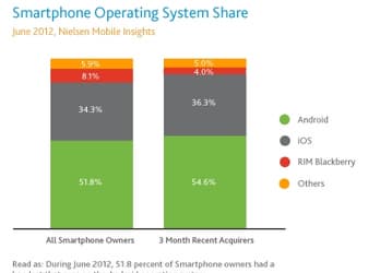 Nielsen: половина американского рынка предпочитает Android, треть — iOS
