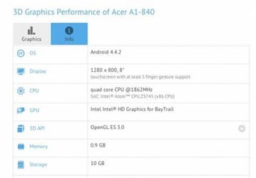 Acer готовит восьмидюймовый планшет Iconia A1-840 на платформе Intel Bay Trail