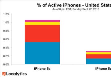 По подсчетам Localytics, в США смартфонов iPhone 5s за эти выходные было продано в 3,4 раза больше, чем iPhone 5c