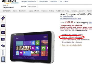 Восьмидюймовый планшет Acer Iconia W3 с ОС Windows 8 «засветился» на сайте Amazon, благодаря чему стала известна его цена