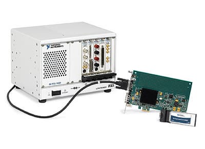 Напомним, открытая спецификация PXI подготовлена и опубликована организацией PXI Systems Alliance. Она определяет платформу на базе CompactPCI, оптимизированную для задач тестирования, измерений и управления. Коротко говоря, с ее помощью можно подключать оборудование к шине PCI Express в ПК с помощью внешнего кабельного соединения. Чтобы реализовать такую возможность, в общем случае, необходимо, как минимум, два компонента: шасси и удаленный контроллер. В набор, предлагаемый NI, как раз и входит шасси PXI-1033 и удаленный контроллер MXI-Express, а также – кабель и хост-карта для шины PCI Express или ExpressCard.