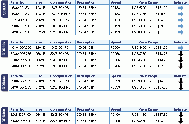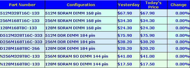 Судя по результатам пятничных торгов и первым торгам сегодня, чипы памяти продолжают дешеветь, причем, это затронуло все чипы DDR – 266/333/400. Необычно низкий спрос на память с начала августа привел к тому, что все больше и больше трейдеров – вслед за производителями памяти – начали срочно сокращать имеющиеся запасы чипов и модулей. Результат – даже пользовавшаяся спросом PC 133 SDRAM перестала дорожать.