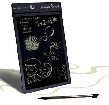 В отличие от большинства жидкокристаллических дисплеев, созданных на стеклянной подложке, дисплей Boogie Board сделан из прочного и гибкого пластика. Чтобы написать или нарисовать что-нибудь на поверхности планшета, можно использовать перо или другой предмет. Ширина линии зависит от толщины предмета и силы нажима. Созданное изображение сохраняется на экране до тех пор, пока не будет нажата кнопка очистки. Энергия затрачивается только в момент очистки (в качестве источника питания используется маленькая часовая батарейка, которой хватает на 50000 циклов стирания). На сайте Amazon устройство можно купить примерно за $30.