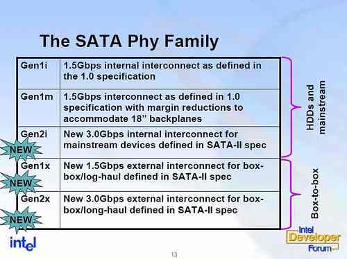 На проходящей в Барселоне, Испания, сессии в рамках весенних Форумов Intel для разработчиков инициативным альянсом Serial ATA Working Group представлена официальная версия последовательного интерфейса Serial ATA II, или Serial ATA 300. Помимо этого, впервые были представлены спецификации новых типов кабелей и разъемов, поддерживающих новые области применения и модели использования интерфейса SATA.