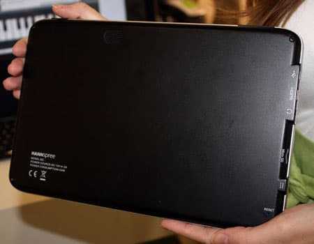 Габаритные размеры HannsPad — 260 x 171 x 13,9 мм, масса — 790 граммов. За питание планшета в автономном режиме на протяжении восьми часов отвечает литиево-ионный аккумулятор емкостью 3500 мАч.