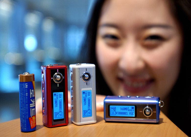 Корейская компания Samsung Electronics представила один из самых маленьких в мире MP3-плееров, YP-T5, который, своим 5,4-см корпусом и весом 24 грамма (без аккумулятора) больше напоминает модную безделушку. Модель представлена тремя вариантами – с корпусами голубого, серебристого и красного цветов, каждый вариант включает три модификации – с памятью емкостью 128, 256 и 512 Мб.