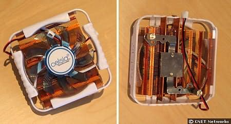 Калифорнийская Celsia Technologiesпредлагает несколько моделей высокоэффективных систем охлаждения для компонентов компьютера (в т.ч. и ноутбуков), которые выполняются из меди и алюминия и имеют оригинальную конструкцию. Радиаторы заполнены водой и имеют внутри множество микроканалов, тепло, отбираемое от горячих элементов испаряет воду, а полученный пар охлаждается, рассеивая тепло на другом элементе радиатора.