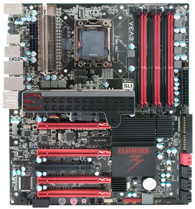 Компания EVGA пополнила ассортимент материнских плат для процессоров Intel новой моделью Classified 3, основой для которой послужил чипсет Intel X58 (разъем — LGA 1366). Принадлежность этой системной платы к высшему классу выдает не только черно-красная расцветка, но и цена — $380 (в США).