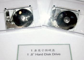 Первыми в марте 2004 года на рынке появятся 1,8-дюймовые винчестеры емкостью 40 Гб, 30 Гб, 20 Гб и 15 Гб. Самая емкая, 40 Гб модель, будет оборудована двумя пластинами и четырьмя головками, эффективная скорость обмена данными будет достигать 25 Мб/с. В винчестерах будут применяться двигатели со скоростью вращения шпинделя 4200 об/мин. Ток, потребляемый винчестером в режиме чтения, составит порядка 300 мА, ударопрочность в активном состоянии – до 200G (2 мс воздействие). О плотности записи данных пока нет.