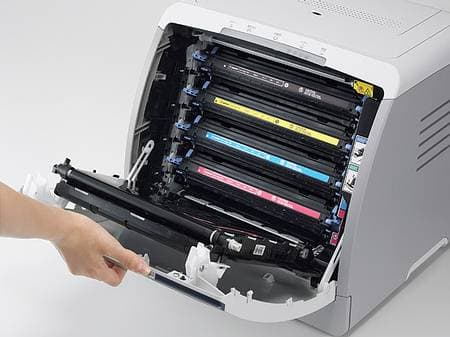 По умолчанию принтер оснащается интерфейсом USB 2.0, адаптеры Ethernet и беспроводной сети доступны в качестве опциональных модулей. Заявленный ресурс картриджей: цветных (три – Y/M/C) – 2000 страниц, черного – 2500 страниц при 5% заполнении. Стоимость картриджей составит около 80 и 70 долларов, соответственно.