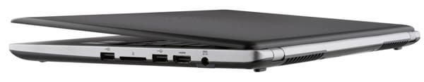 Список средств ввода-вывода включает два порта USB 3.0, два порта USB 2.0, D-Sub, HDMI, слот SD, два громкоговорителя мощностью по 1,5 Вт каждый, микрофон, Gigabit Ethernet, Wi-Fi 802.11b/g/n и Bluetooth V4.0. Есть камера разрешением 1,3 Мп. Ноутбук размерами 340 x 239 x 21 мм комплектуется литиево-полимерной батареей емкостью 47,73 Вт∙ч, напряжение которой равно 11,1 В.