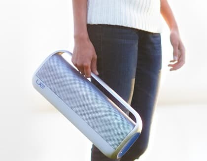 Переносная колонка Logitech UE Boombox, которую сложно назвать портативной, подключается к устройству посредством Bluetooth и поддерживает до восьми устройств, из которых три могут работать одновременно. Заявлена работа на расстоянии до 15 метров от источника. Колонка оснащена алюминиевой ручкой для переноски и имеет достаточно стильный дизайн. Максимальное время работы от батареи составляет шесть часов.Громкость равна 102 дБС, частотный диапазон — от 55 Гц до 20 кГц.Габариты Boombox равны 386 х 79 х 164 мм, масса — 1,98 кг.Производитель оценил новинку в $250.